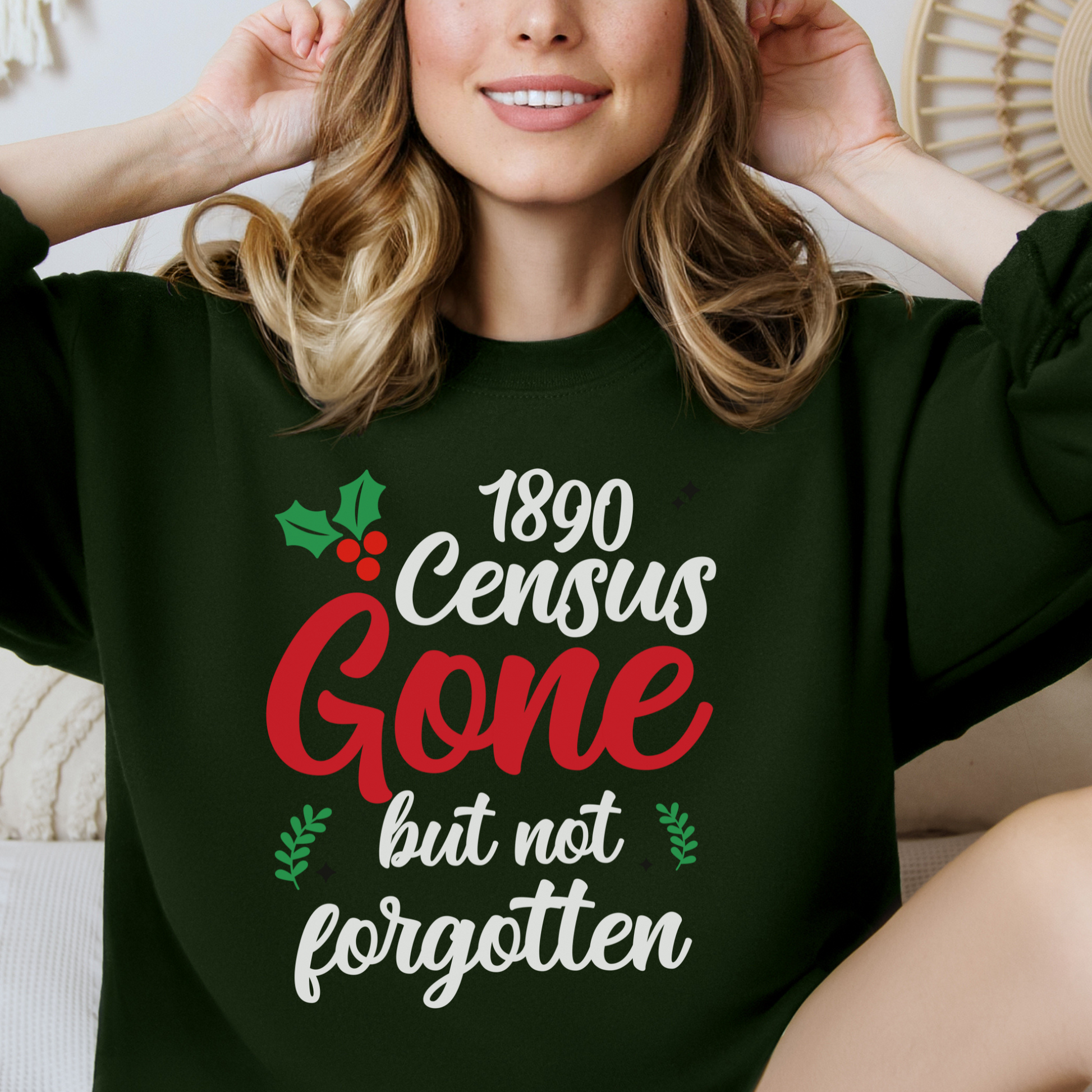 Stay cozy while showing off your genealogy humor with thisĀ ā1890 Census Gone But Not Forgottenā sweatshirt.