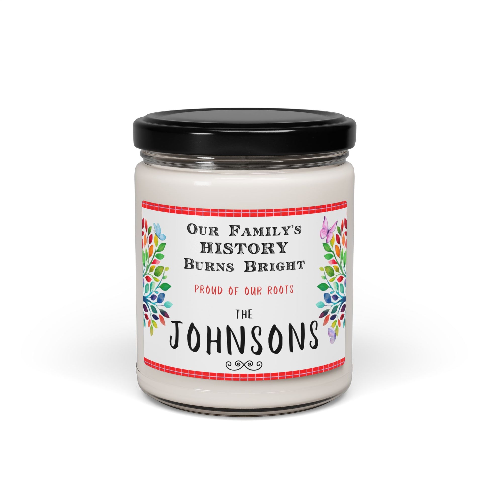 - We offer this beautiful personalized soy candle that celebrates the timeless beauty of your family history.