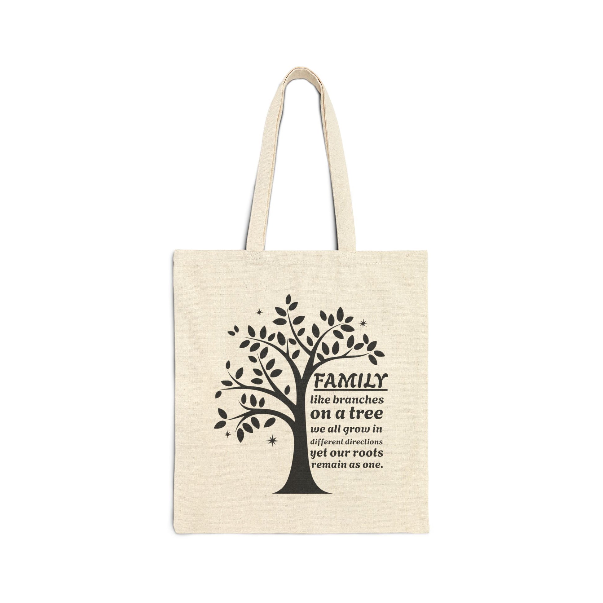 Celebrate the ties that bind with this elegant Family Tree tote featuring a unique quote.
