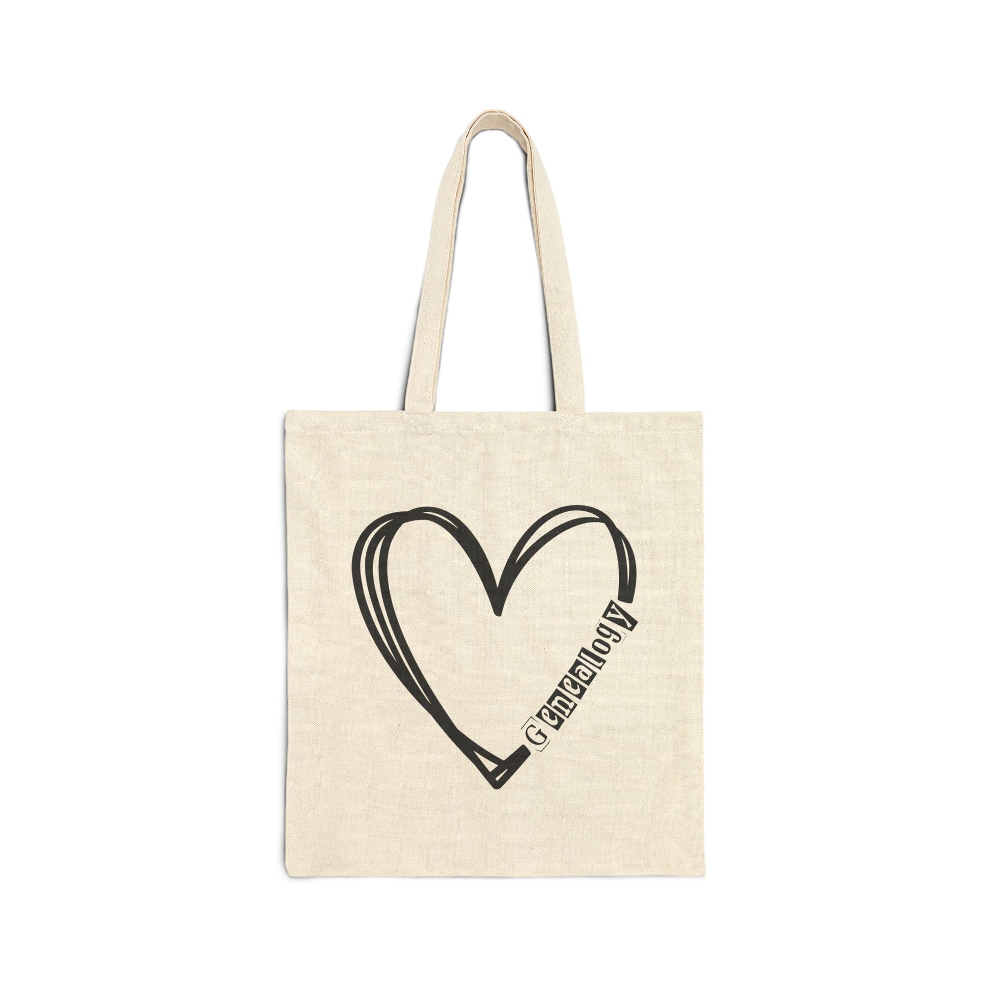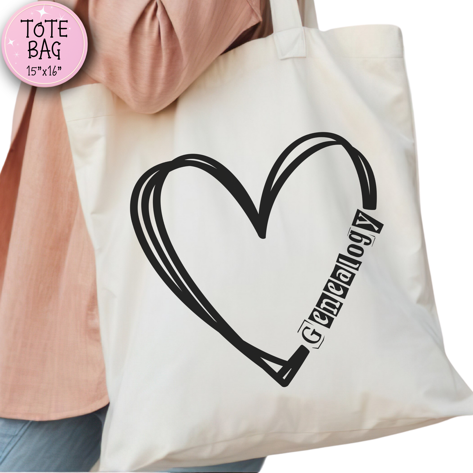 - Featuring a bold hand-drawn heart wrapped around the word “Genealogy,” this stylish and practical bag is perfect for carrying research notes, books, or everyday essentials.