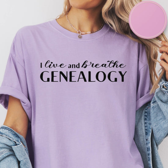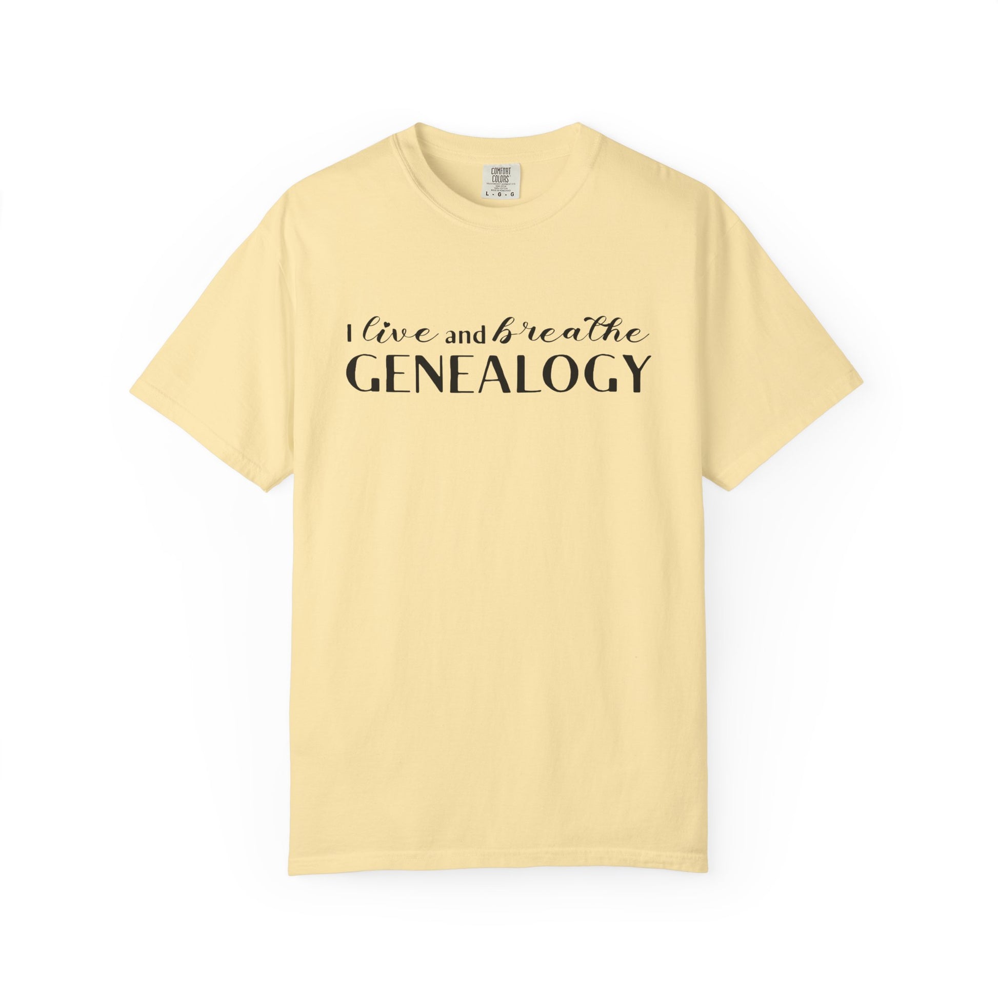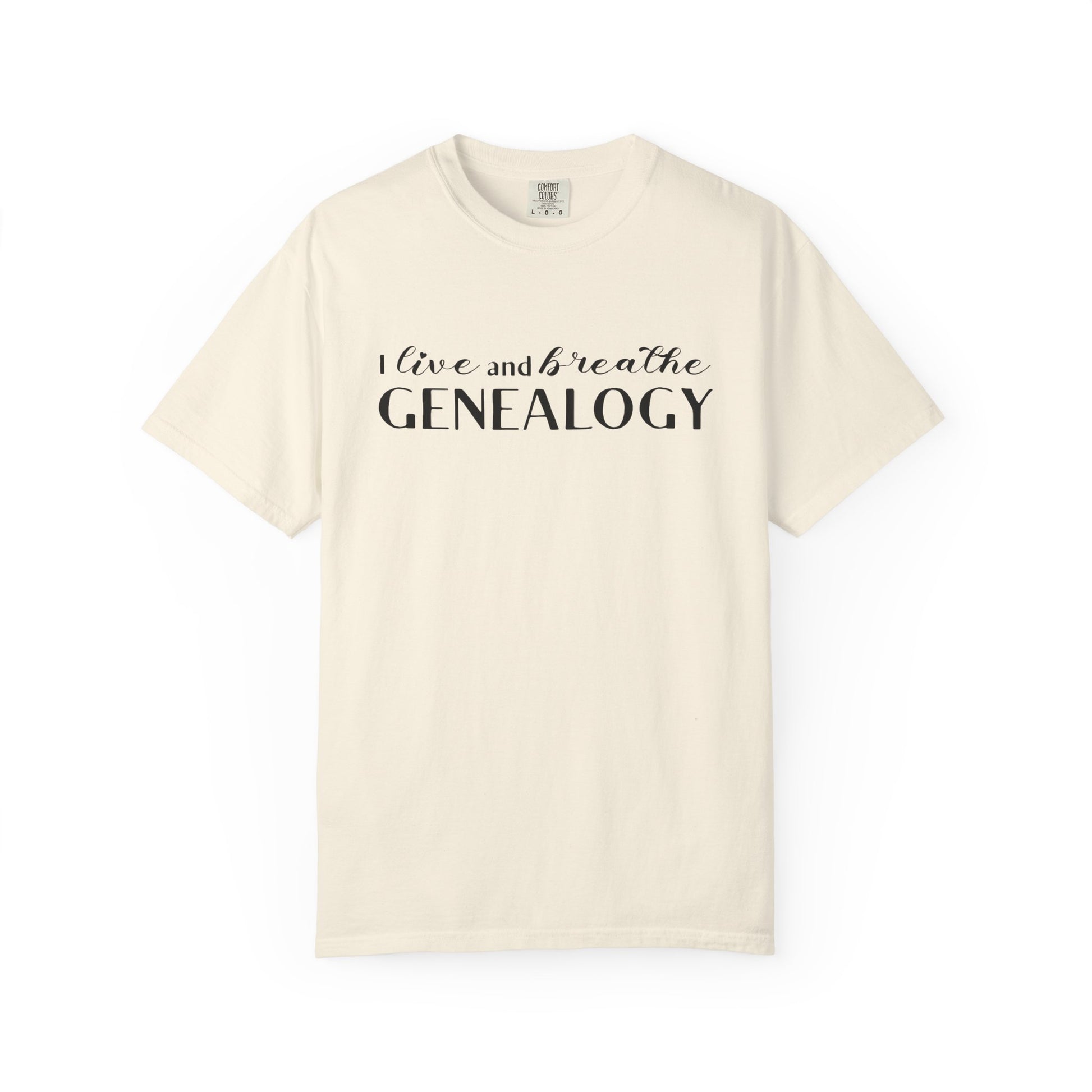 Show your passion for family history with this “I Live and Breathe Genealogy” shirt.