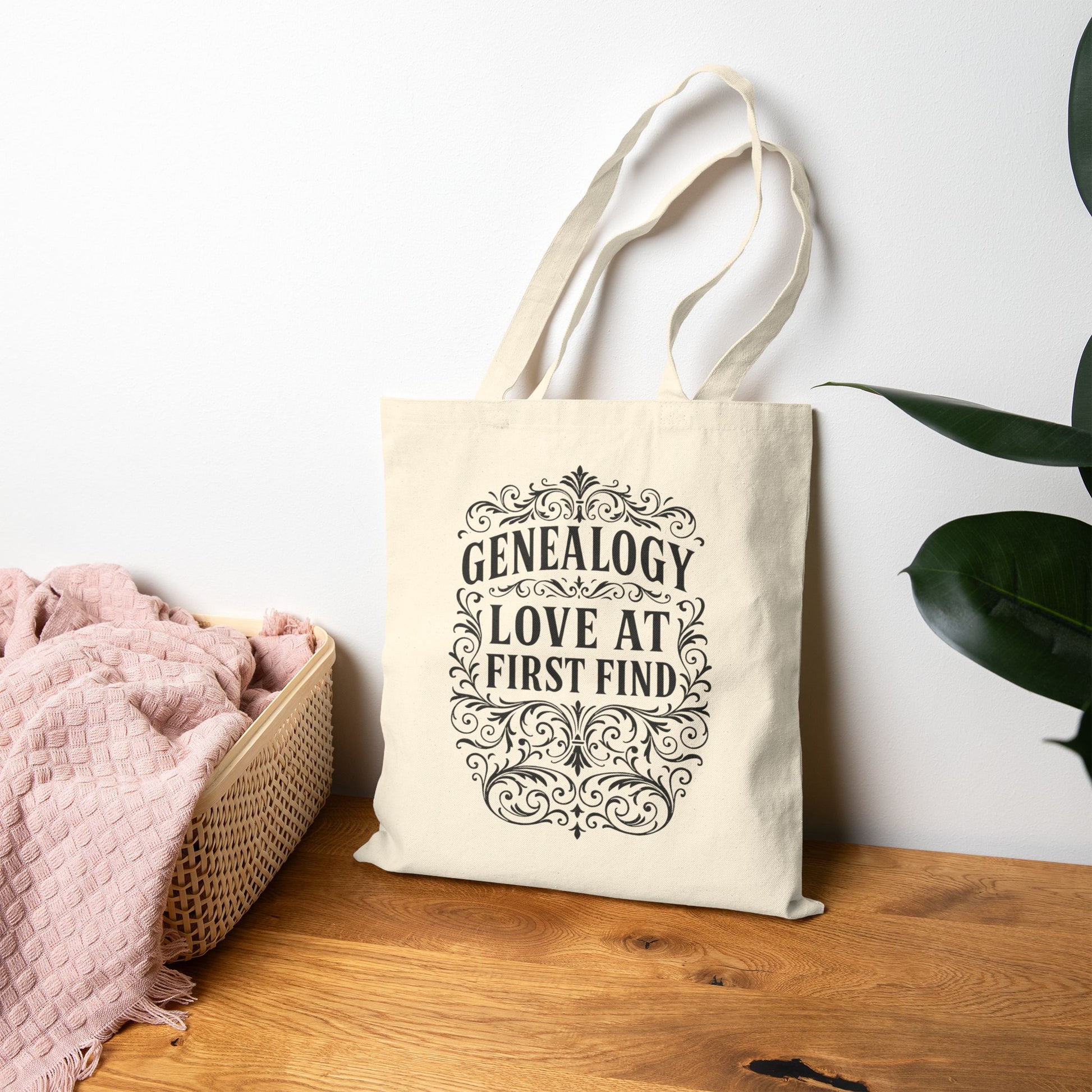 - This 15 by 16 inch tote features a bold black ink vintage-style design that reads “Genealogy, Love at First Find”, making it the ultimate gift for anyone who loves tracing their roots.