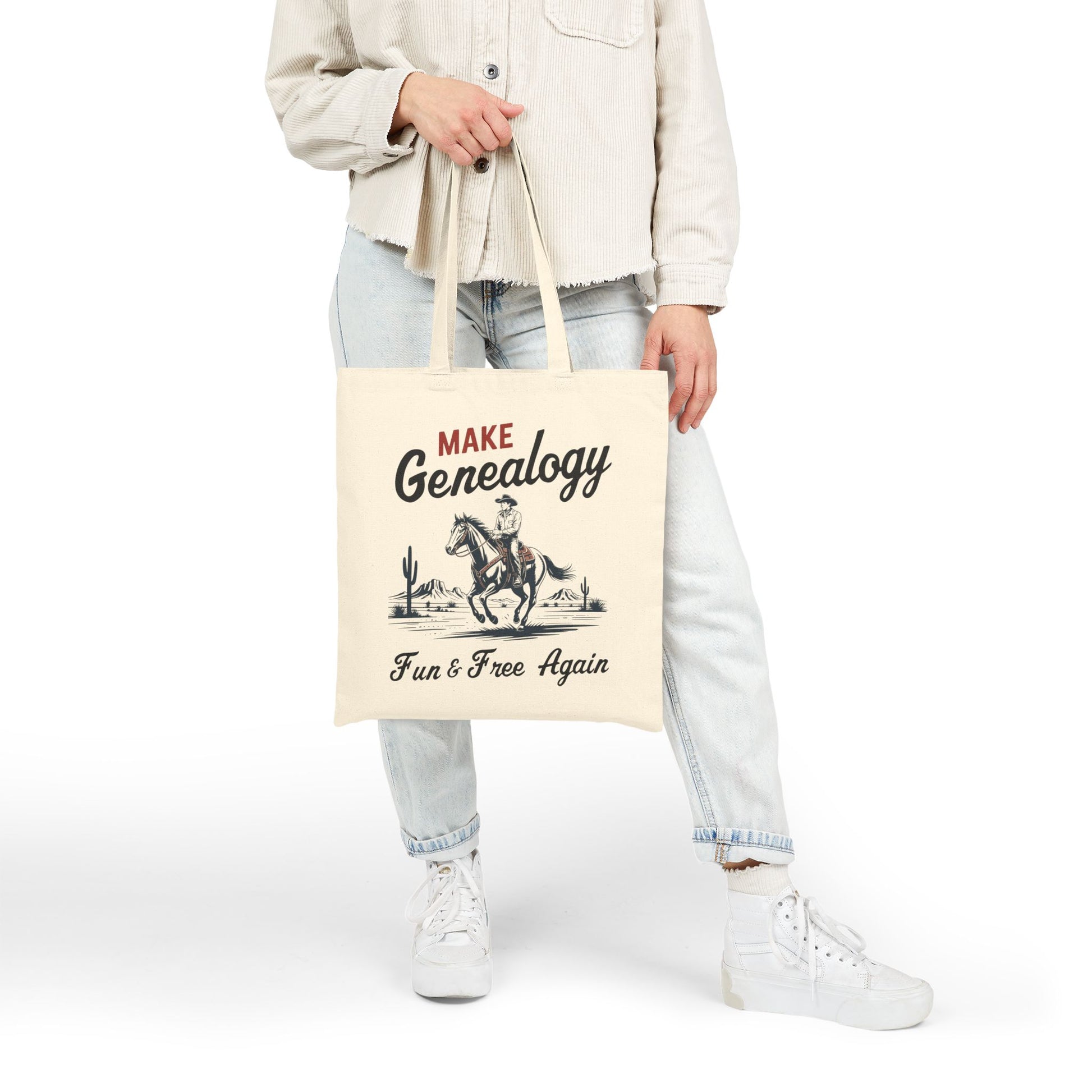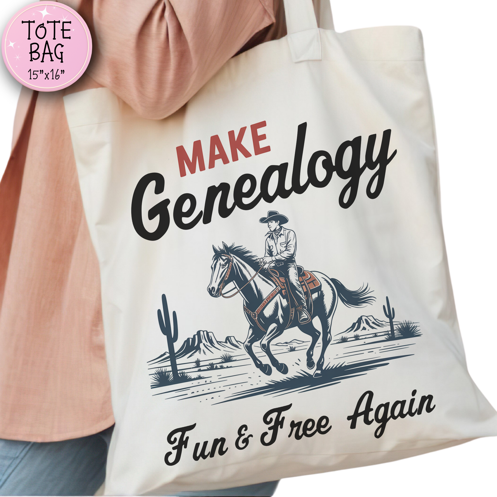 Bring some cowboy charm to your research adventures with thisĀ āMake Genealogy Fun & Free Againā tote bag! š¤ š