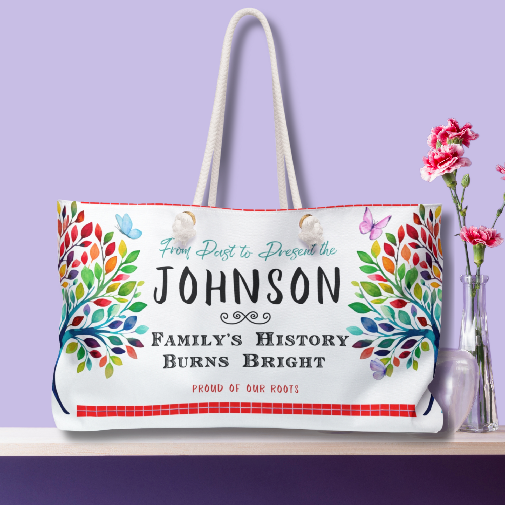 - Crafted with love and attention to detail, this large weekend bag is the perfect present for family historians, moms, and grandmas who cherish their family legacy.