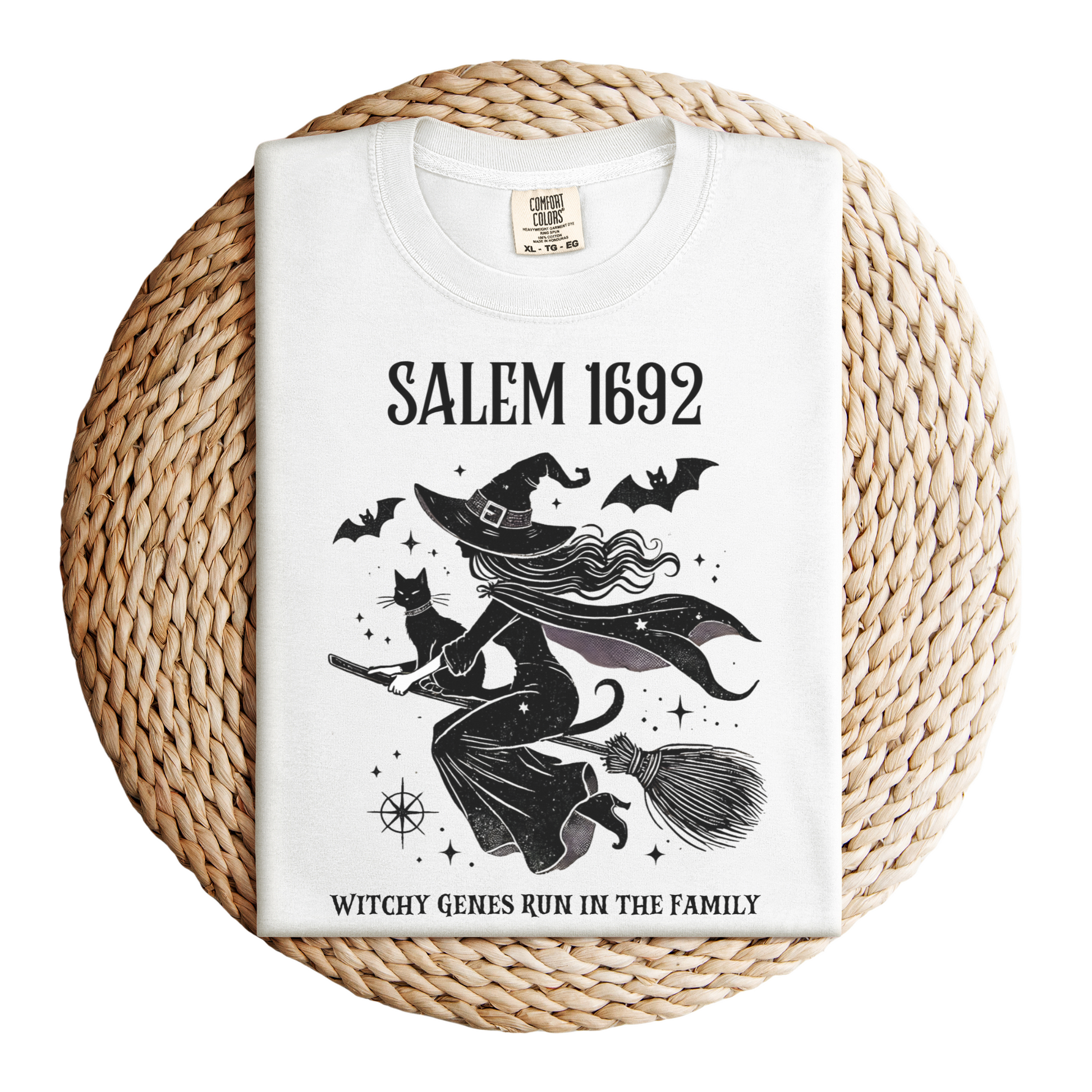 Embrace your enchanted ancestry with our Salem 1692 “Witchy Genes Run in the Family” shirt!