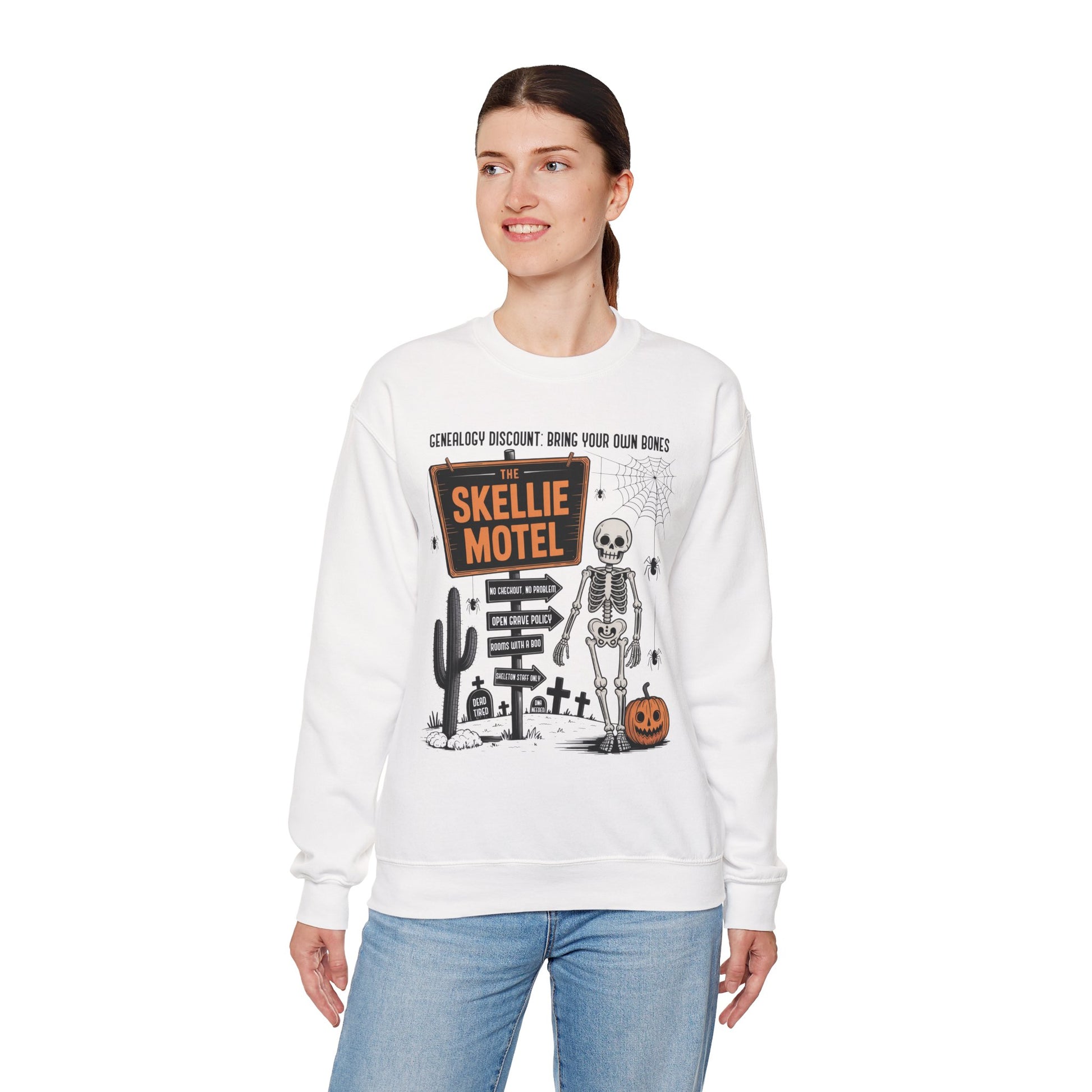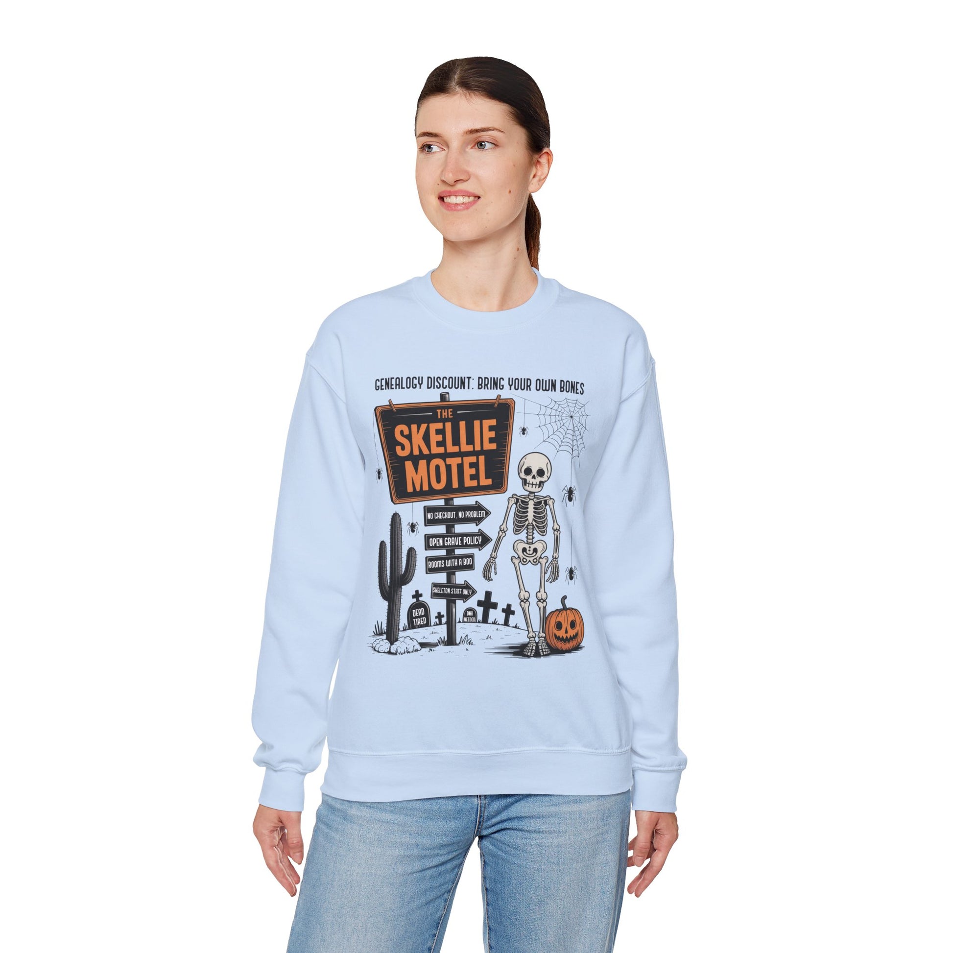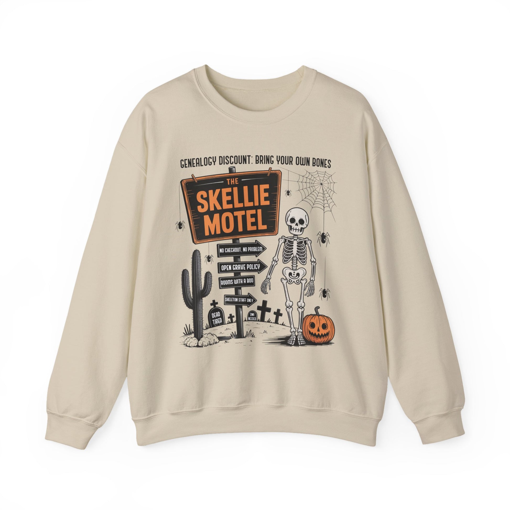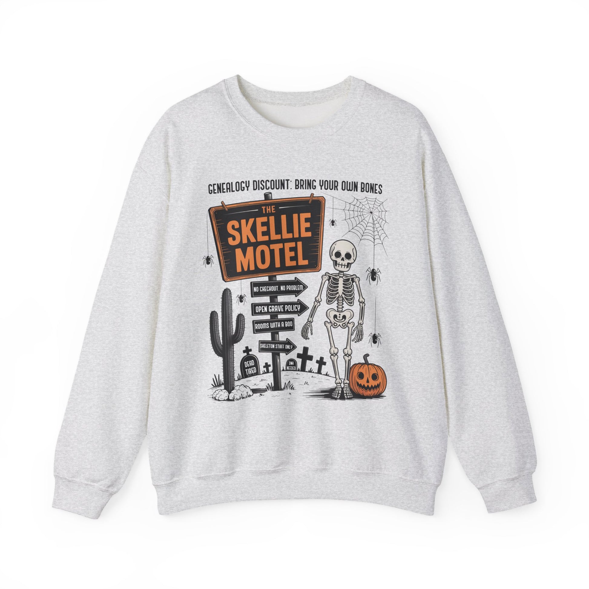 Warm up your witchy research nights with this “Skellie Motel” genealogy sweatshirt!