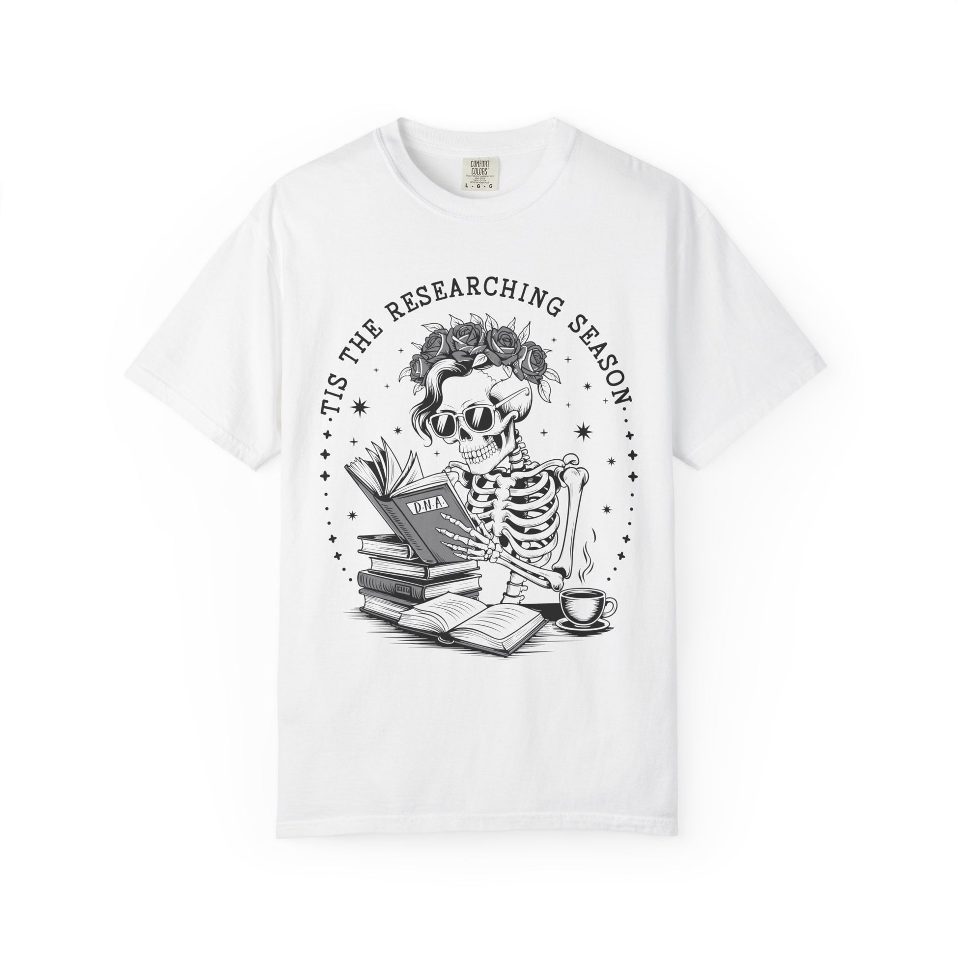 - This “’Tis the Researching Season” t-shirt brings spooky vibes to your favorite pastime: digging up dead relatives.